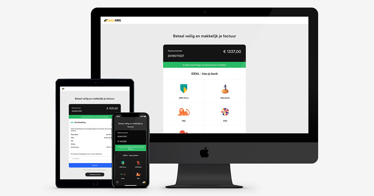 Uiteraard is deze pagina net als de rest van onze website volledig responsive, het maakt dus niet uit op welk apparaat je een betaling wil doen, en beschikbaar in onze onlangs toegevoegde (ahum, hipsters, ahum) dark mode. Het laatste betekent natuurlijk niet dat je dan ook zwart kunt betalen 😉 Wat moet je doen om deze pagina live te bekijken? Simpel; schaf zo snel mogelijk bij ons een zonnestroomsysteem aan!